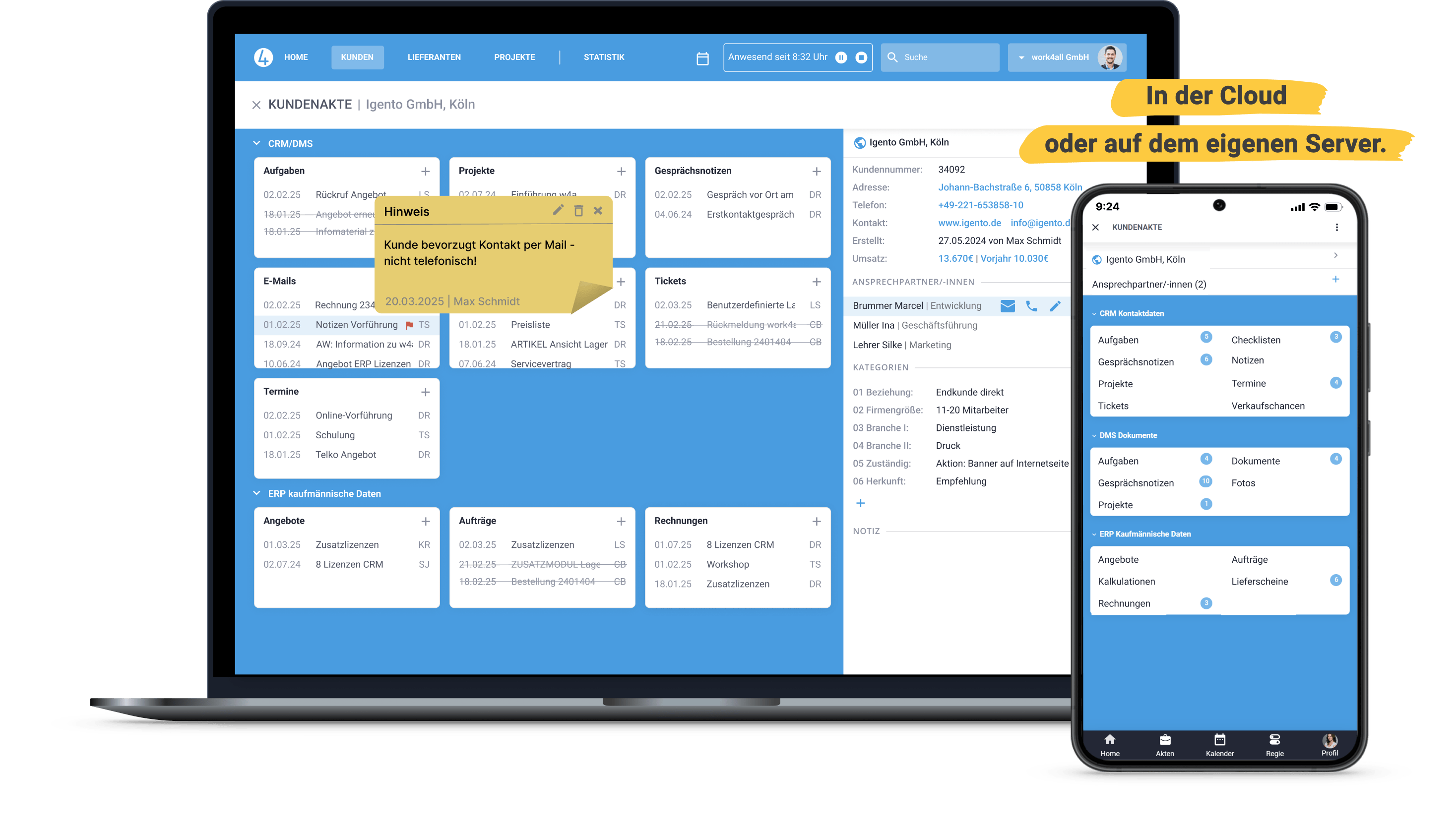 - Mobiler Zugriff: Alle Kundendaten und Aufgaben sind auch per App oder Browser verfügbar - ideal für Außendienst und Homeoffice.
