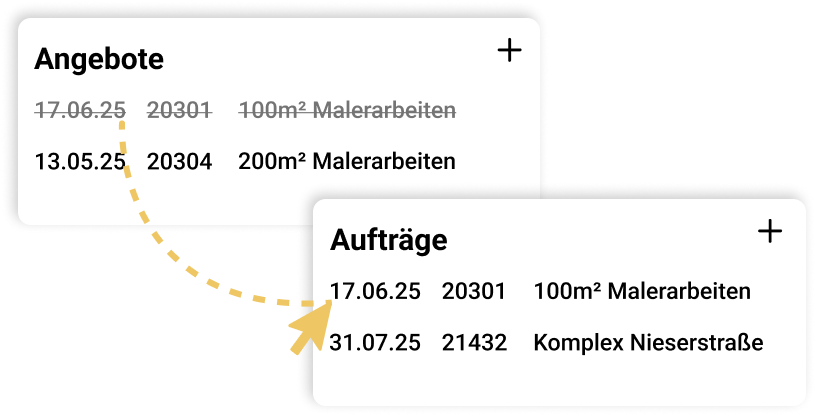 Aufmaß vor Ort erfassen, direkt kalkulieren, ein Angebot erstellen und daraus nahtlos Auftragsbestätigungen sowie Tätigkeitsnachweise generieren – bis hin zur fertigen Rechnung. Dieser durchgängige Prozess wird in work4all abgebildet und lässt sich über Schnittstellen problemlos mit branchenspezifischen Aufmaßprogrammen verbinden.