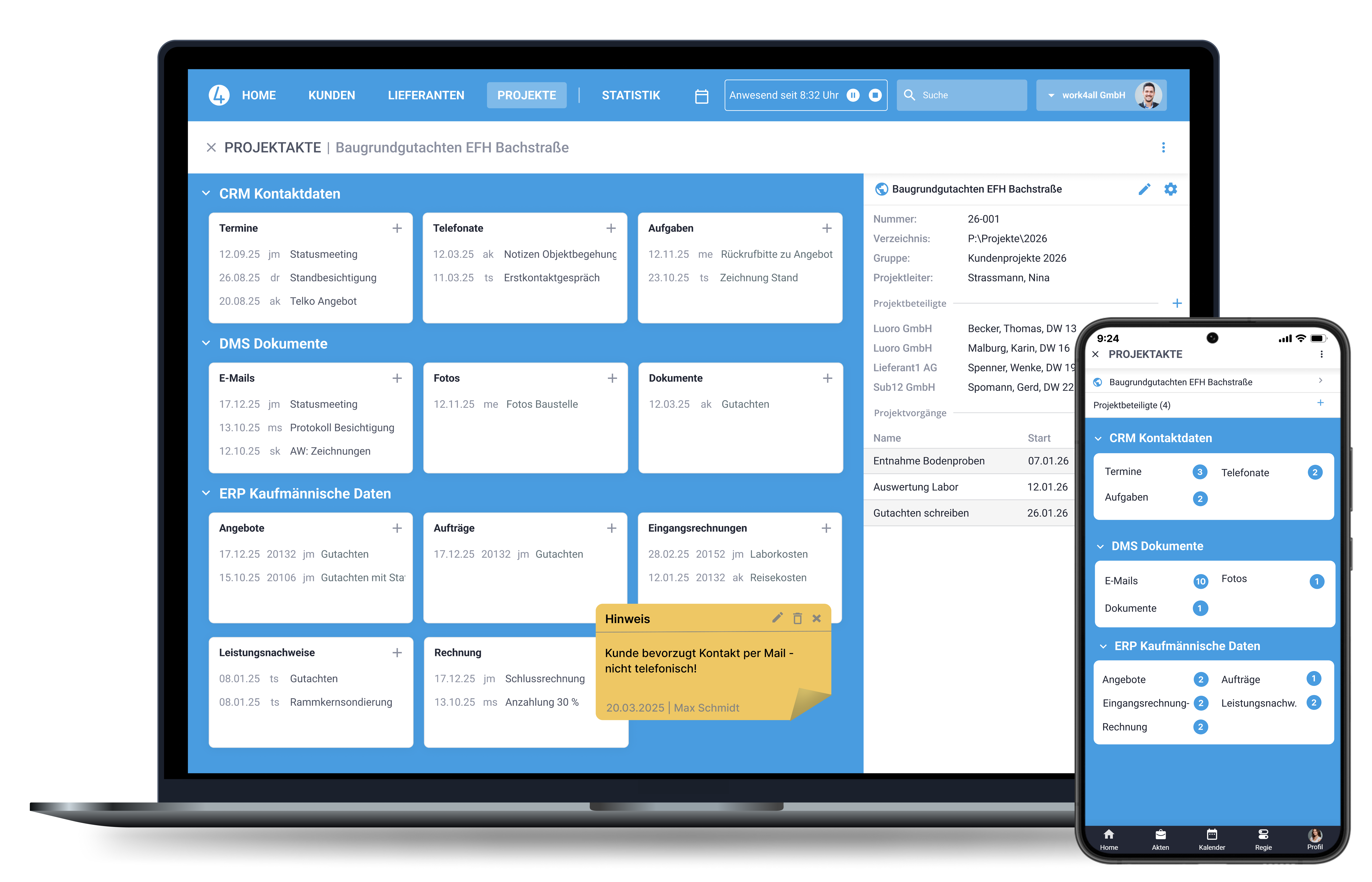 Tracked project times are compared with the planned values and can be conveniently invoiced at the push of a button.