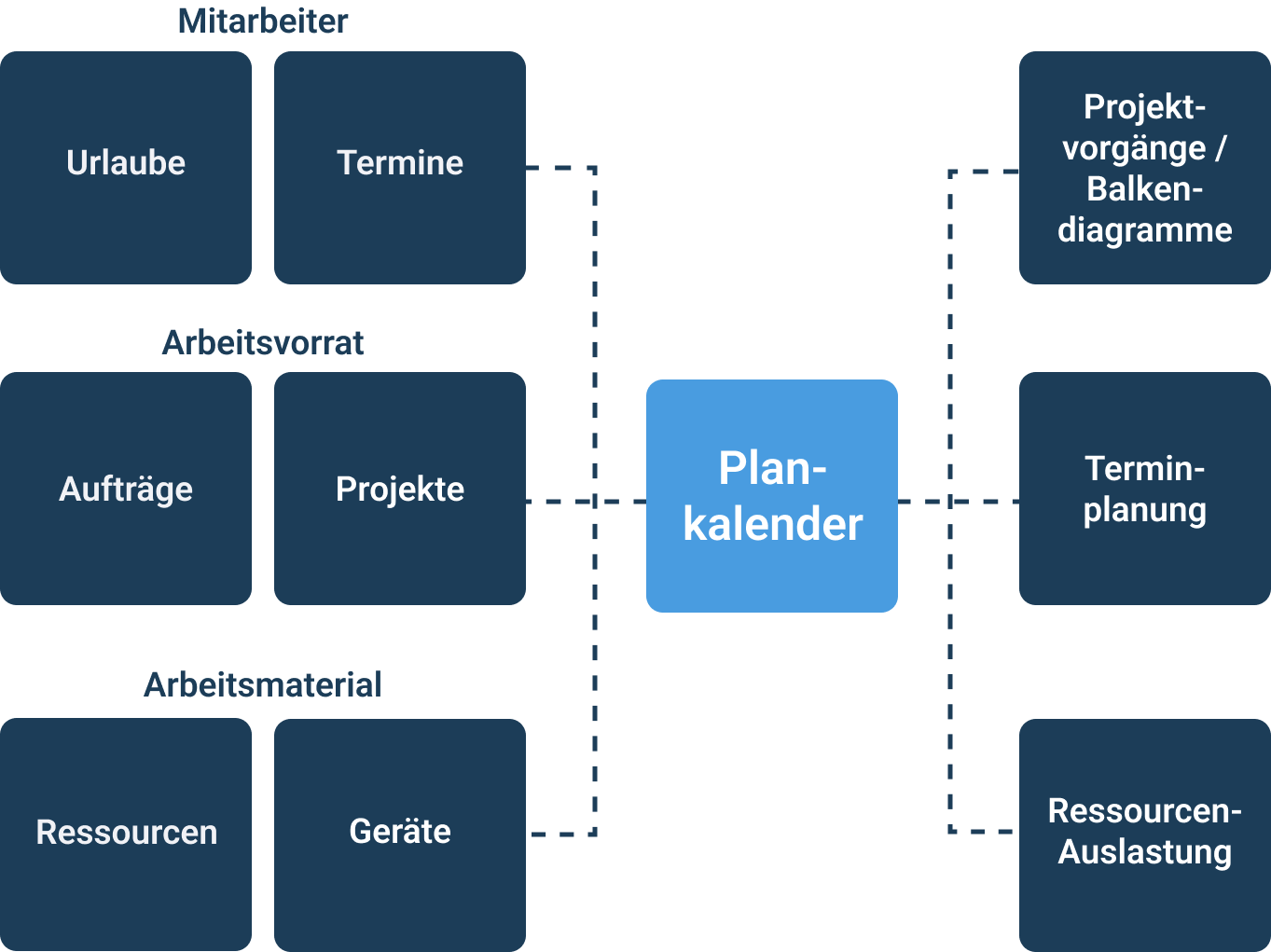 Der Plankalender ist das zentrale Tool für die Projekt- und Ressourcenplanung. Zum einen haben Sie die Multi-Projektansicht für den zeitlichen Überblick über alle laufenden Projekte, zum anderen die Einzel-Projektansicht für die detaillierte Planung eines Projektes und der erforderlichen Kapazitäten. Auch in einer GANTT-Übersicht können mehrere Projekte graphisch aufeinander abgestimmt und Projektvorgänge per Drag & Drop verschoben werden.